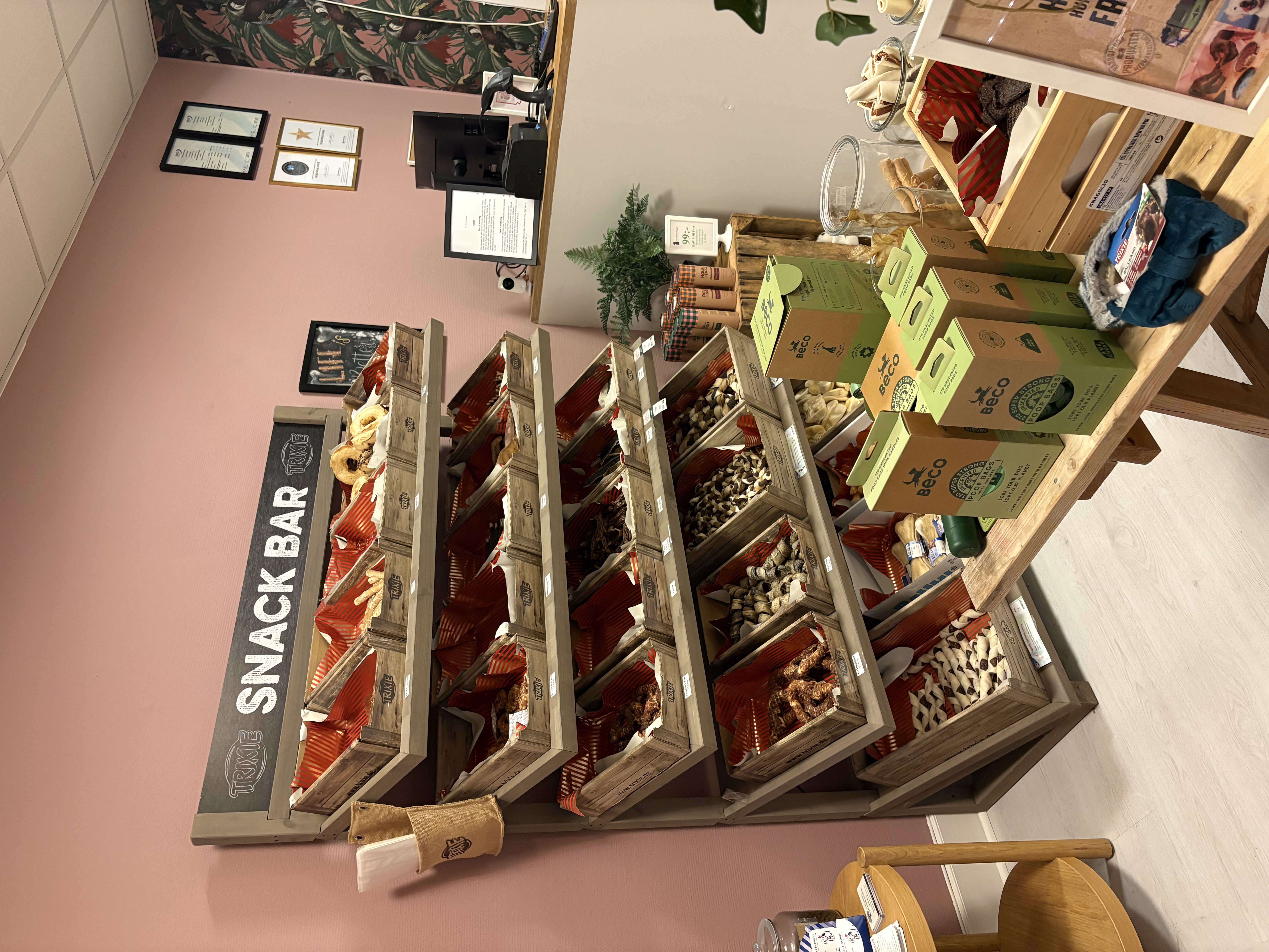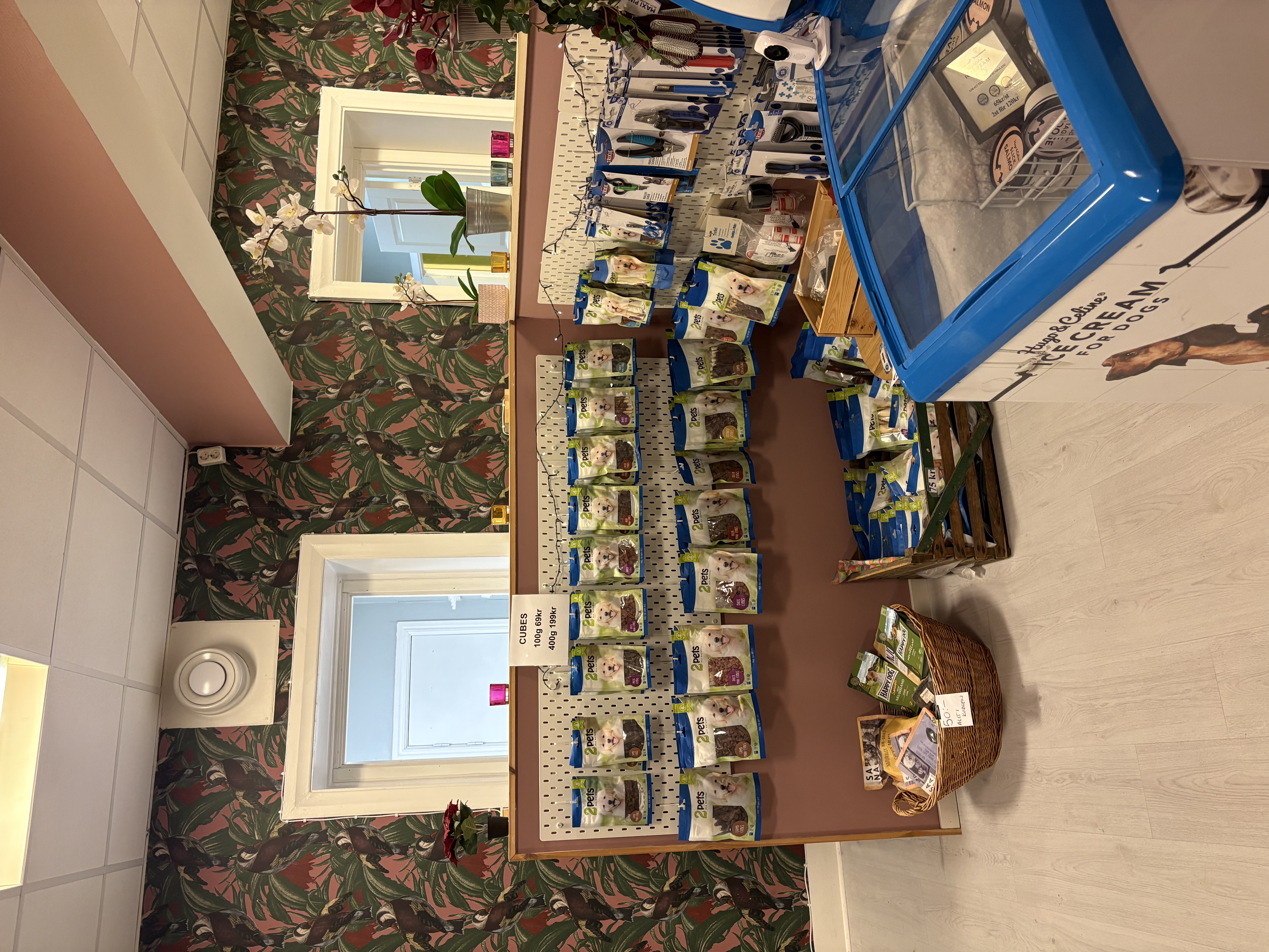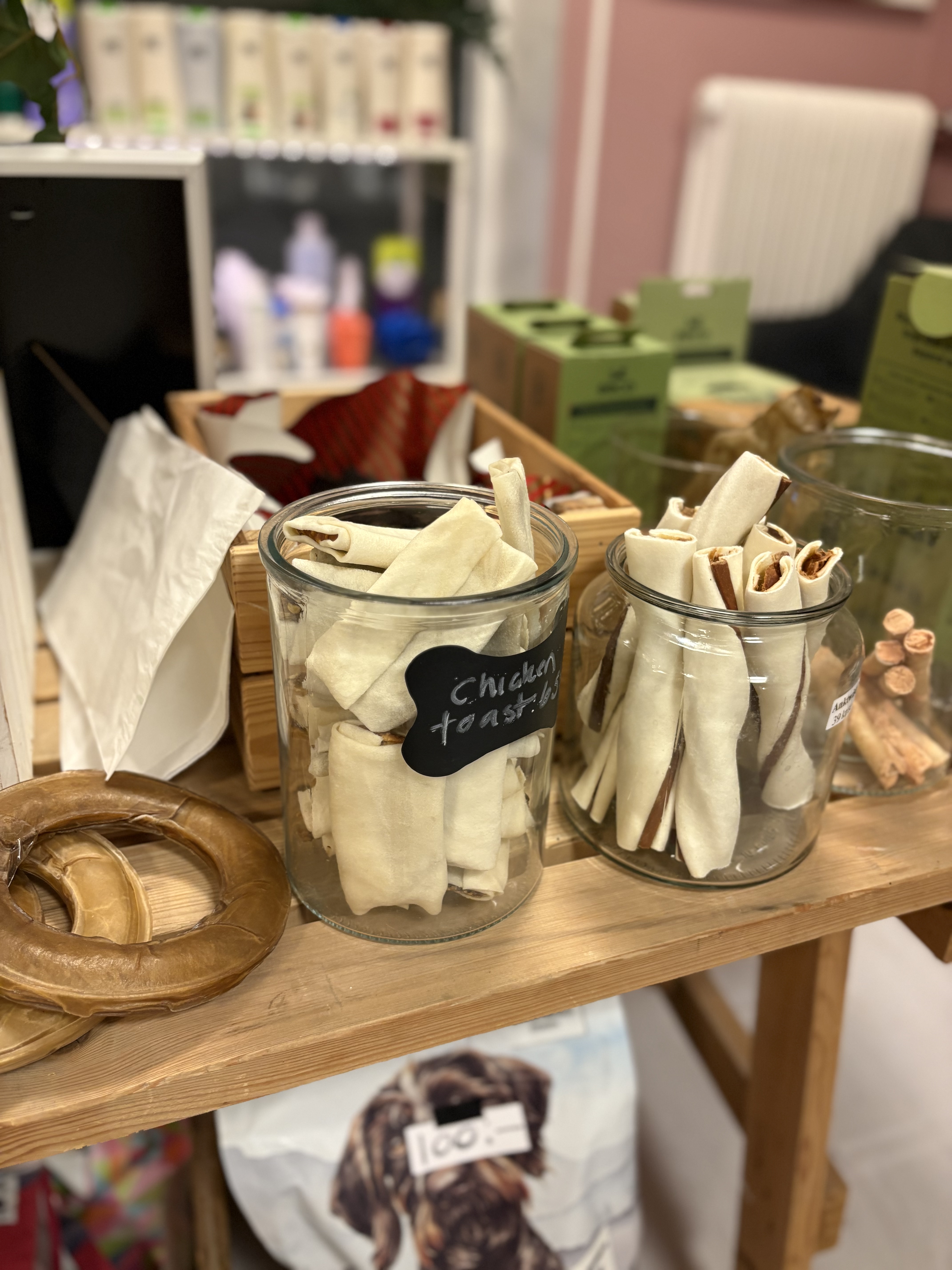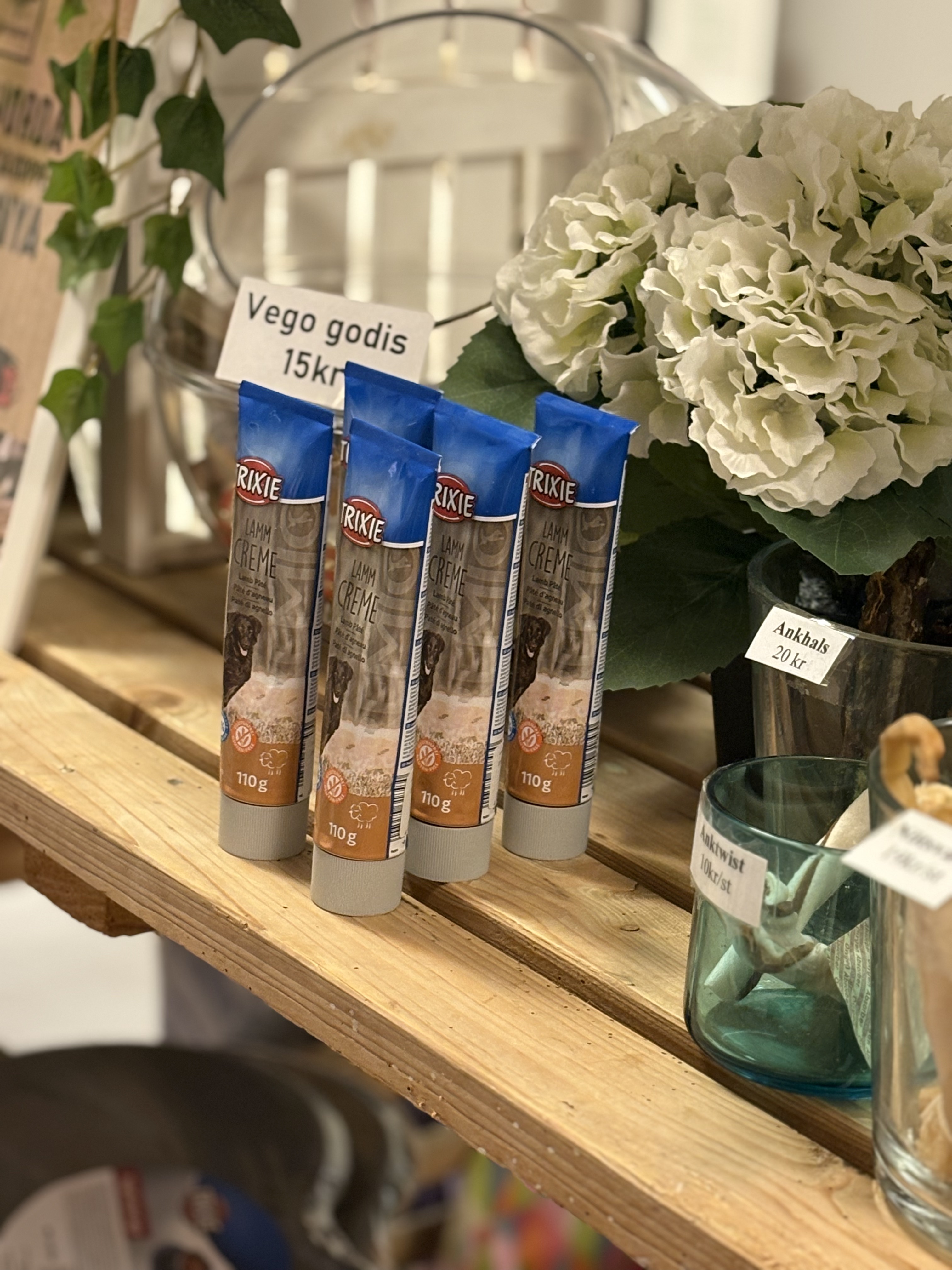 I vår lilla butik i Karlshamn hittar ni tugg, godis, tillbehör till hunden & lyxiga pälsvårdsprodukter.